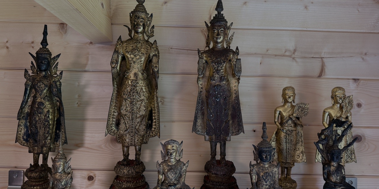 Kunsten omfatter primært Buddhaer, buster samt sølvskåle udelukkende fra Burma". Herudover en større samling af antikke kinesiske møbler samt flere lak og trækasser hvoraf flere er tilbage fra det 18 århundrede.