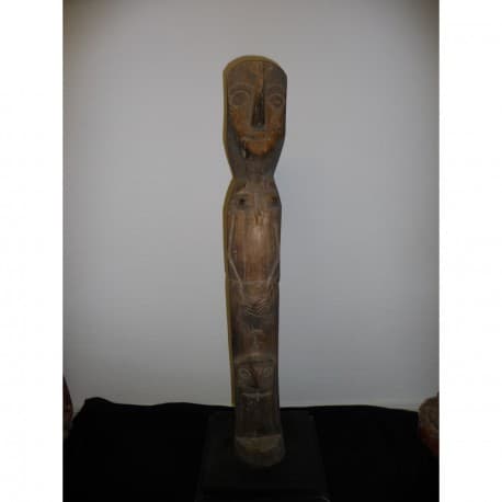Ganske primitiv beskytterfigur med 2 ansigter fra en nordburmesisk stamme. Helt unikke. På nyere stand.