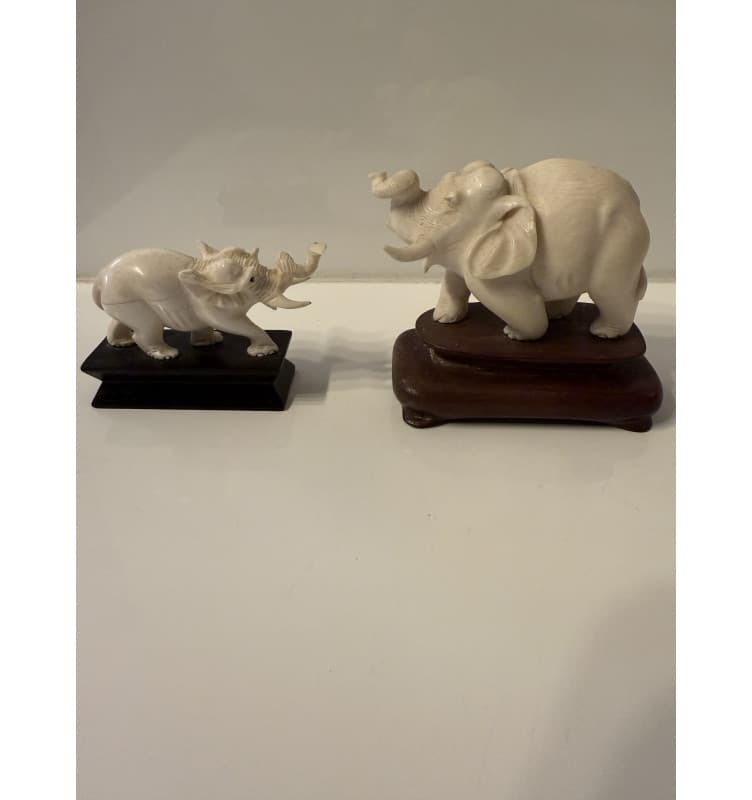 Flot udført elefanter på stand i helt hvid elfenben.