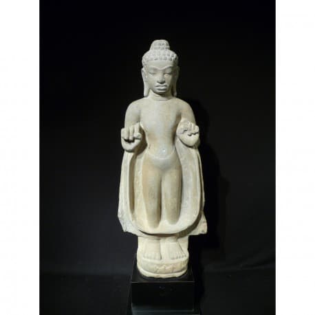 Meget flot stående Buddha i sandsten. Antageligt fra Cambodia eller Indien..