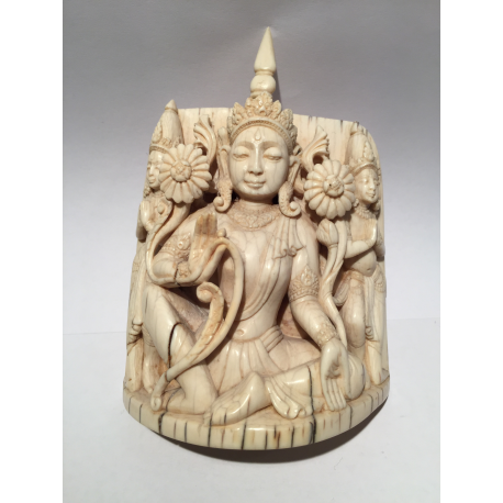 Elfenbenets glatte overflade og naturlige nuance giver figuren en blød og elegant fremtoning.