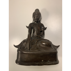 7.920,00 kr.Klassisk Mandalay siddende Buddha; Meget smukt og harmonisk ansigt udført i en flot brunlig bronze. God størrelse.