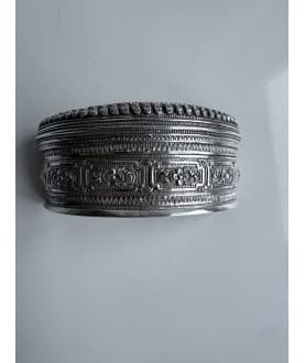 Oprindelse: Burma Materiale: Sølv Højde: 3,5 cm. Lenght/Diameter: 9 cm. Alder: 1800 tallets slutning. -