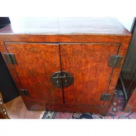 Et meget smuk lille rummeligt skab i en flot rød lakfarve. Pænt beslag