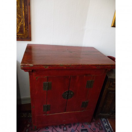 Et meget smuk lille brudeskab i rød lak og med en flot patina efter mange brugsspor.