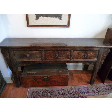 Et smuk "alterbord" i natur træ farve med skuffer. Voks og lak behandlet med en fantastisk patina efter mange hundrede års brug.
