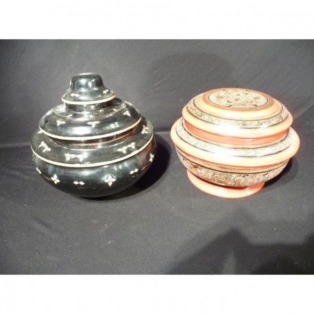 Opbevaringskasser med mellemlåg i flet og lak; brugt til frugt mm.