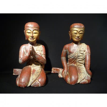 Smukt par munke i rød lak med stene.