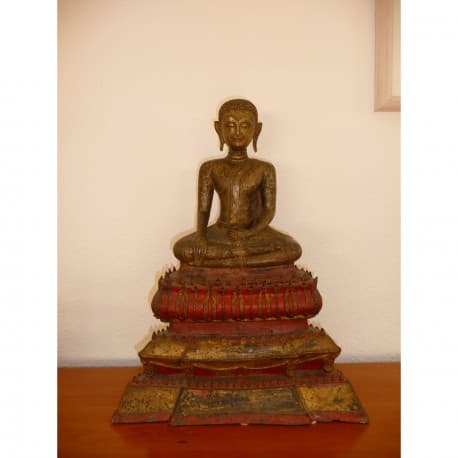 Fantastisk smuk munk på trone med rester af bemaling og forgyldning. Bangkok perioden.
