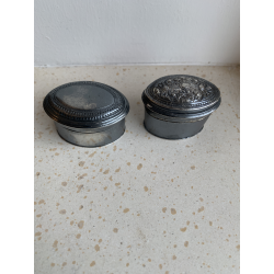 500,00 kr.2 meget små niello/sølv dåser. Den ene med en markering i bunden. Begge i fin stand. Vægt 25 og 33 gram.