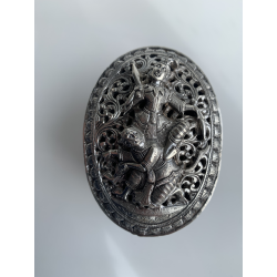 Oprindelse: Burma Materiale: Sølv Højde: 6,5 cm. Lenght/Diameter: 7,5 cm. Alder: 1900 tallets begyndelse. -