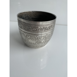 Oprindelse: Burma Materiale: Sølv Højde: 7,5 cm. Diameter: 10 cm. Alder: 1900 tallet. -