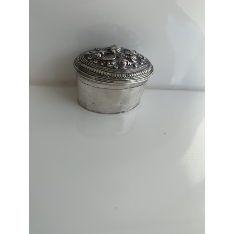 Lille lime opbevarings sølv dåse med en fugl på låget. Blanke sider. Vægt 43 gram.
