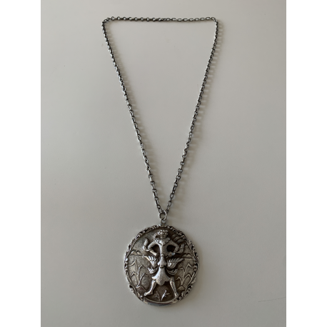 Lækker sølvhalskæde med en fabelperson afbilledet. Vægt 70 gram.