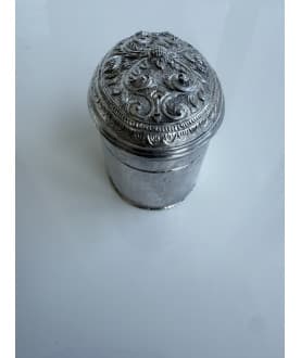 Oprindelse: Burma Materiale: Sølv Højde: 7,5 cm. Lenght/Diameter: 6,5 cm. Alder: 1900 tallet. -