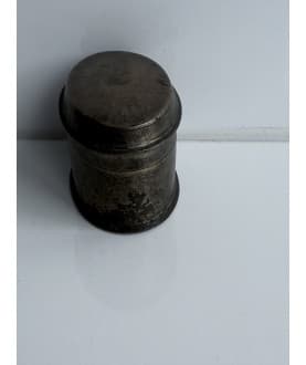 900,00 kr.Gammel opbevarings dåse for knust lime der bliver brugt i madlavning og i en blanding af tobak ala skrå. Specielt disse runde dåser i kobber er uhyre svære at finde den dag i dag. Rester af lime. Vægt 74 gram.