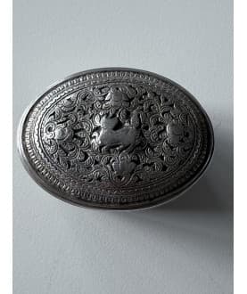 Oprindelse: Burma Materiale: Sølv Højde: 4,5 cm. Længde/diameter: 6,5 cm. Alder: 1900 tallets begyndelse. -