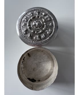 Oprindelse: Burma Materiale: Sølv Højde: 4 cm. Lenght/Diameter: 9 cm. Alder: 1800 tallets slutning. -