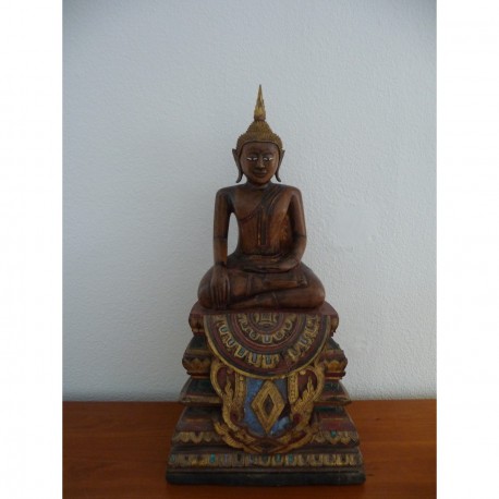 Forrygende siddende Ayuttaya Thai Buddha i teak på throne. I naturtræ farve med sten indlagt. Samlerstykke og en ener.