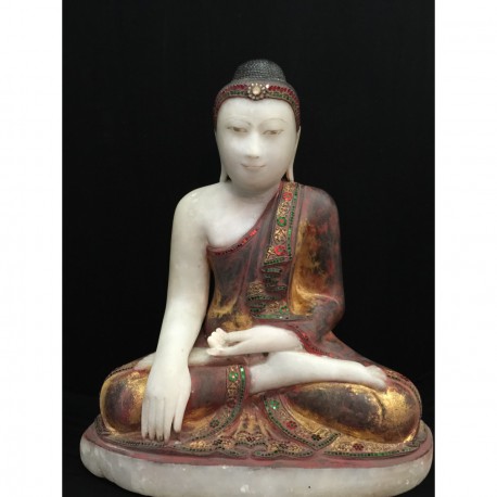 Antiker Mandalay-Buddha aus Alabaster mit Steinverzierung – Burma, 19. Jahrhundert, 54 cm - A137