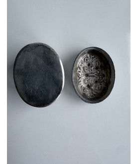 Kleinere ovale Silberbox von guter Qualität mit einem sehr schönen symmetrischen Blumenmuster auf dem Deckel und den Seiten. Sehr detailliert und präzise. In einem sehr guten Zustand. Gewicht 63 Gramm.