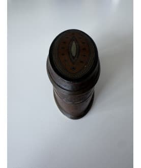 2.000,00 krSehr alte Kupferdose zur Aufbewahrung von zerstoßenem, getrocknetem Kalk. Ein Muster auf dem Deckel und auf dem Boden macht saubere Seiten aus reinem Kupfer. Reste von getrocknetem Kalk im Inneren. Im Vergleich zum Alter ist sie in einem sehr guten Zustand. Gewicht 166 Gramm.