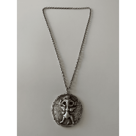 Silberne Halskette mit einer Fabelperson dargestellt. Gewicht: 70 Gramm.
