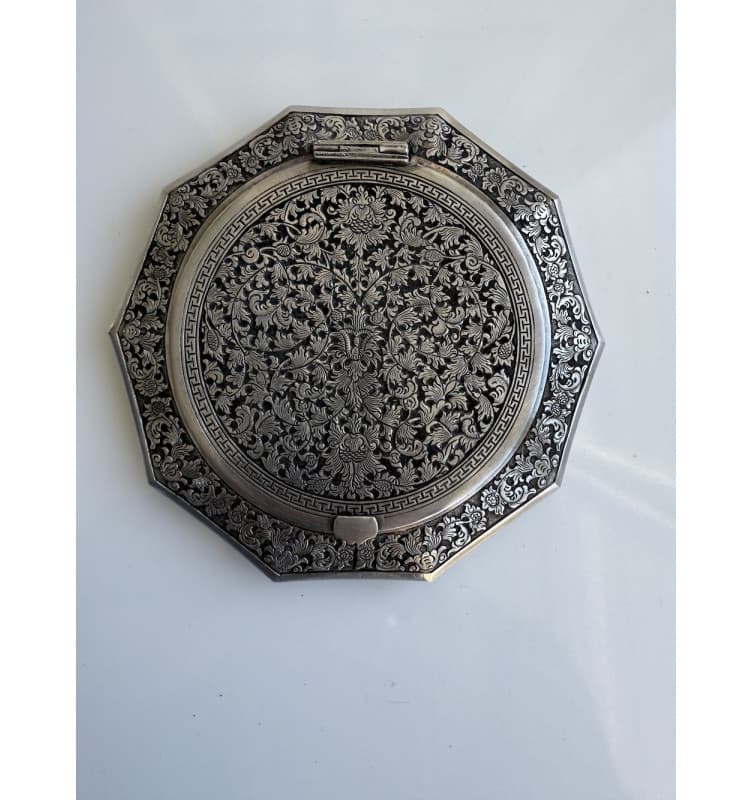 Einzigartige Make-up-"Box" in Silber, verziert mit einem feinen Blumenmuster