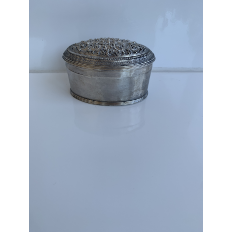 Silberne Limettenbox mit einem sehr detaillierten Blumenmotiv auf dem Deckel verziert. Leere Seiten. Gewicht 110 Gramm.