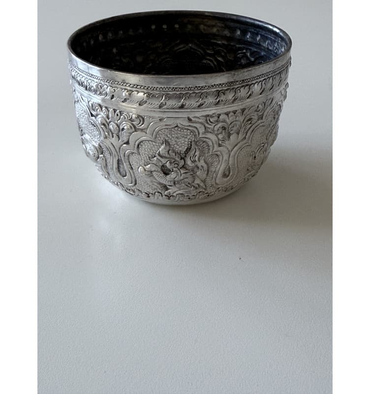 Kleinere Silberschale mit einer Anzahl von Tieren an den Seiten. Eine große Markierung ist in die Unterseite eingraviert. In einem feinen Zustand. Gewicht 79 Gramm.