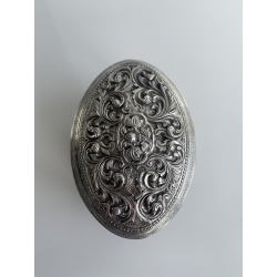 880,00 krOval silver lime box decorated with a very detailed flower motive on the lid and blank sides. Weight 80 gram.