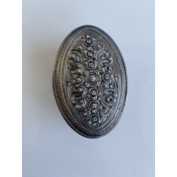 1.120,00 krOval silver lime box decorated with flower motive on the lid and blank sides. Nearly invisible inscription on the bottom. Weight 98 gram.