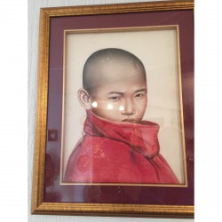 1.200,00 krEin junger Mönch. Burma, hinter Glas, in einem vergoldeten Holzrahmen. Signiert.