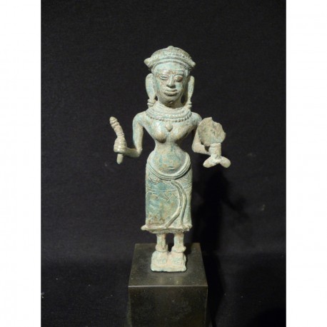 Khmer Bronzefigur auf Sockel – Kambodscha, 9.–12. Jahrhundert - AND46