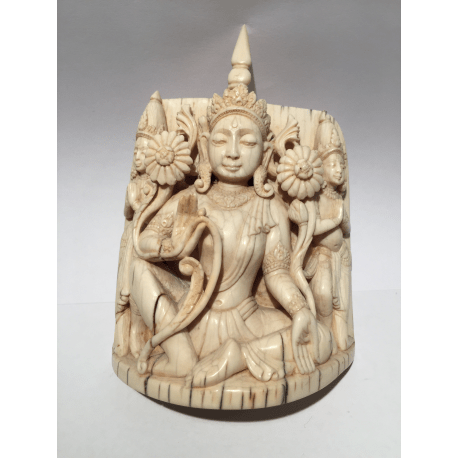 Sehr detaillierte sitzende Buddha mit zwei Verehrern aus Elfenbein gefertigt. Hochwertiges Stück. Auf dem Rücken ein Fabeltier.
