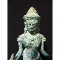 Herkunftsort: Kambodscha Material: Bronze Höhe: 21 cm. inkl. Sockel. 16 cm. ohne. Länge/Tiefe: Alter: 10.-13. Jh. -