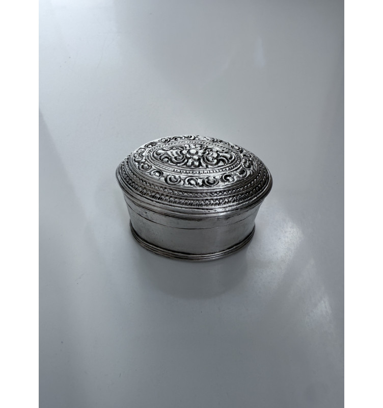 Very nice little silver box with a beautiful symmetrical floral pattern on top. Blank sides and in a good condition. Weight 35 gram.
