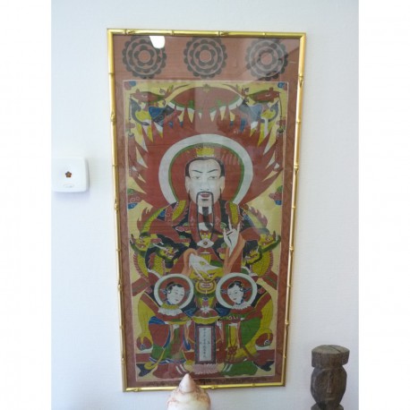 Picture on silk, behind glass, in a wooden bamboo gilted frame. Made by the Jao tribe in the boarderland between Laos and Thailand