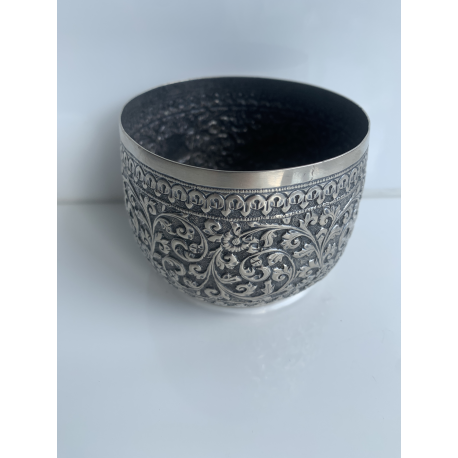 Old and rare bowl with flower pattern allover, also on the bottom. There is a small inscription on the side with a date., 1853. In a very good condition. Weight 150 gram.